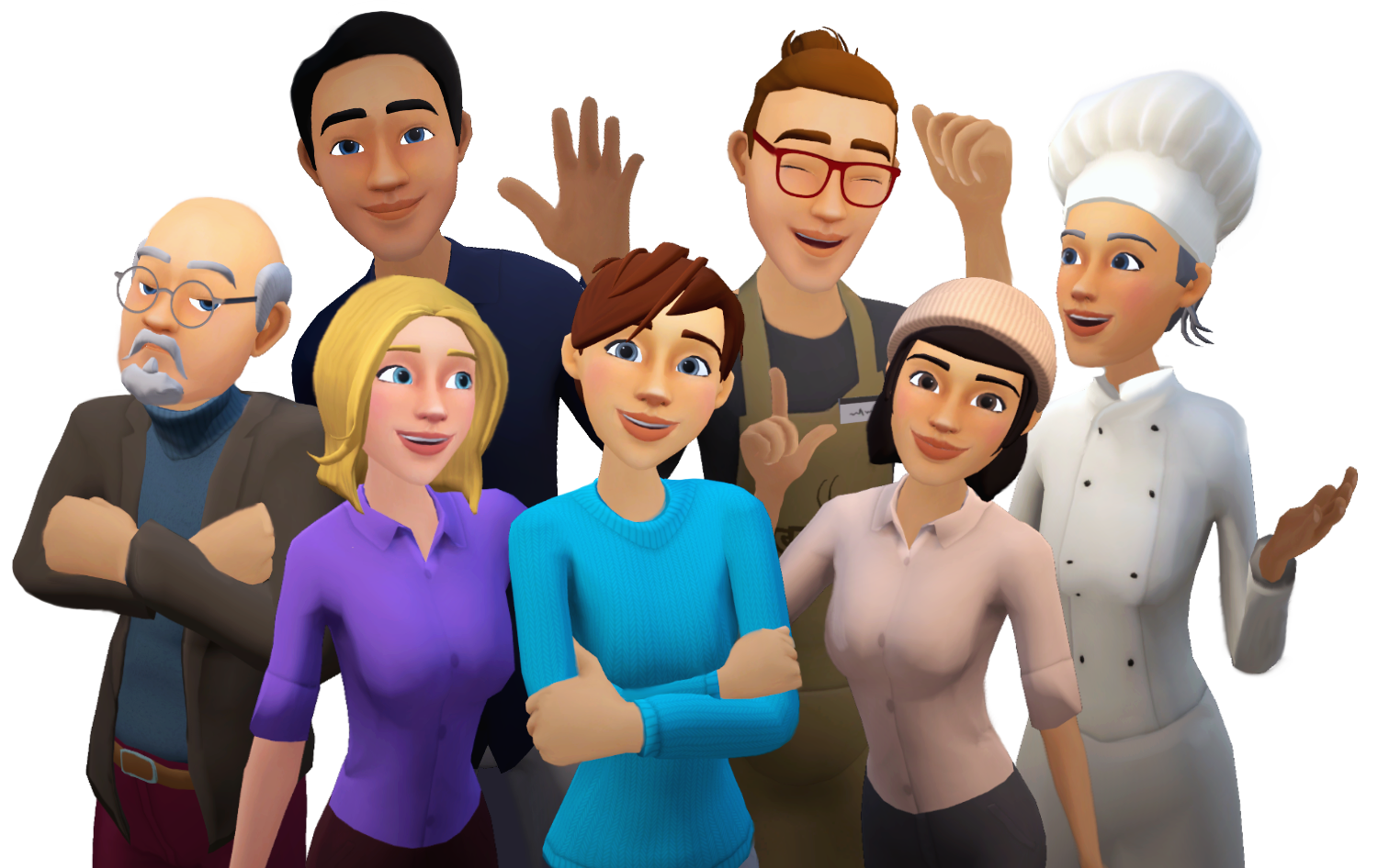 Engage in conversations with 1000+ fun and friendly AI avatars around hundreds of everyday topics such as Things to Do, Work, Family, Shopping, Fitness and Exercise, Food, Music, and much more.
