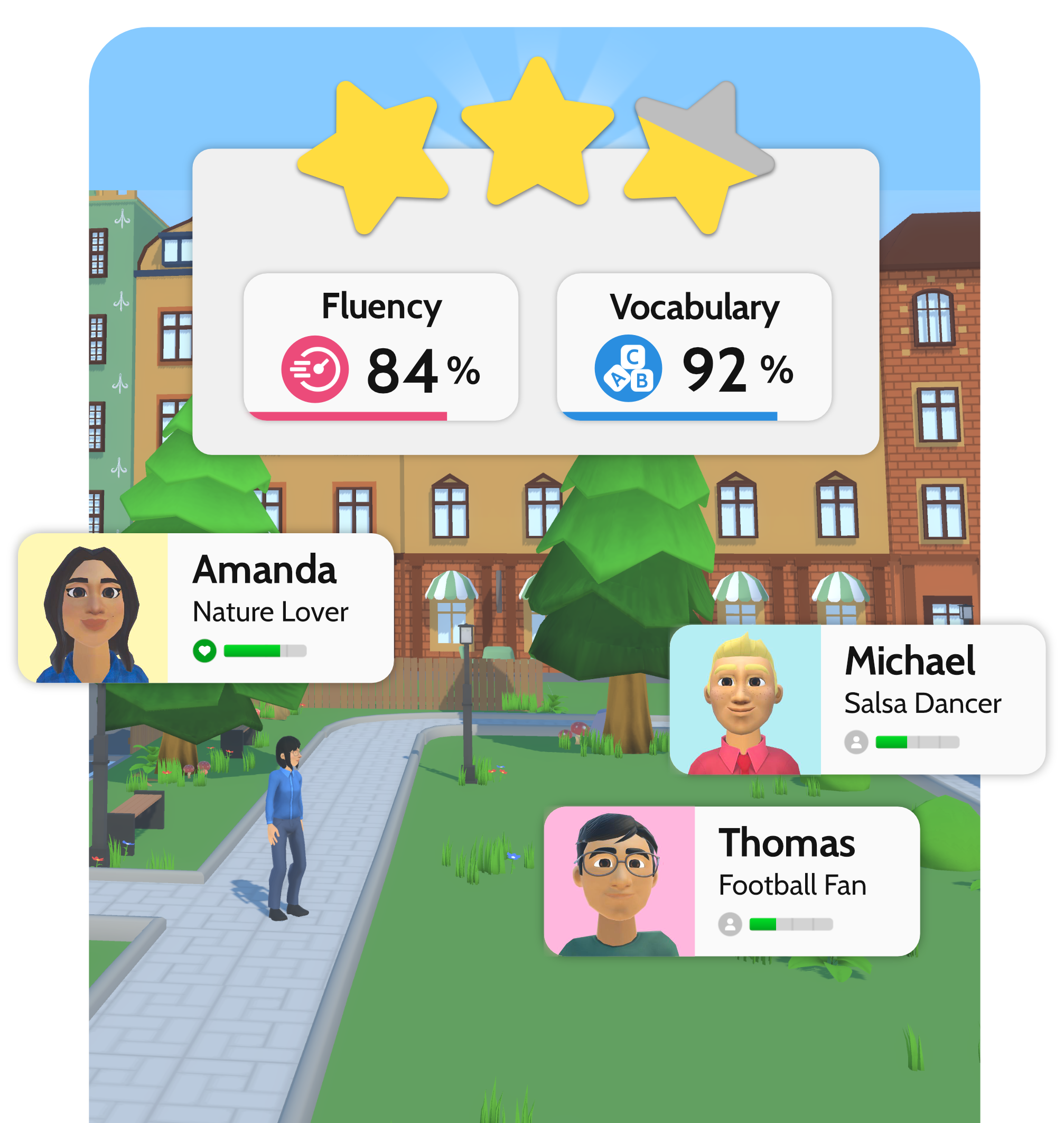 Lingolooper was born to make speaking practice fun, efficient and accessible by combining interactive AI, gamification and 3D animation so that you can get the benefits of learning the language like you're living abroad – wherever you are.